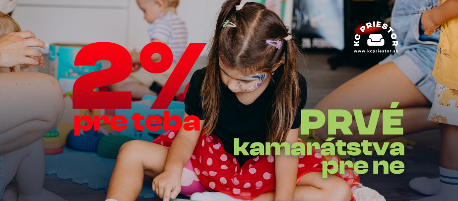 a) 2% z vašej zaplatenej dane – je suma (minimálne však 3 €), ktorú môžete v prospech KC PRIESTOR poukázať.